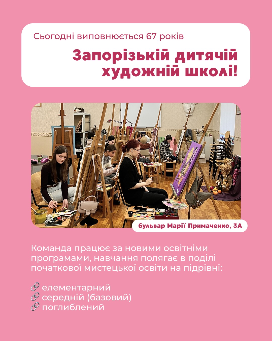 Запорізькій дитячій художній школі — 67 років. І це більше, ніж дата. Це — десятки поколінь учнів, тисячі робіт, сотні історій про шлях у мистецтві 🤲🏼