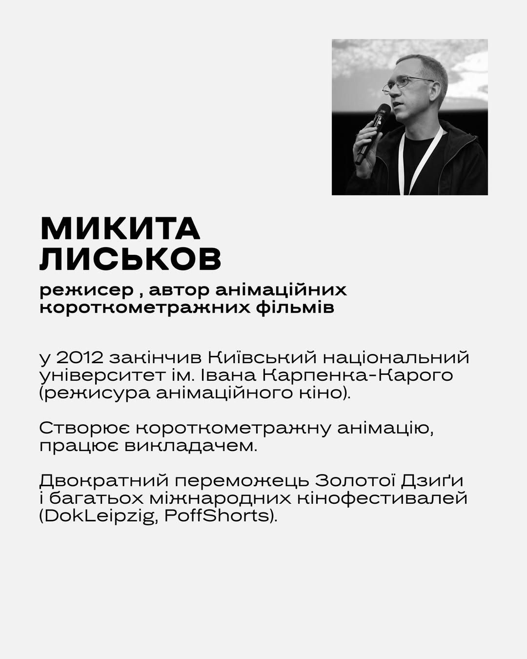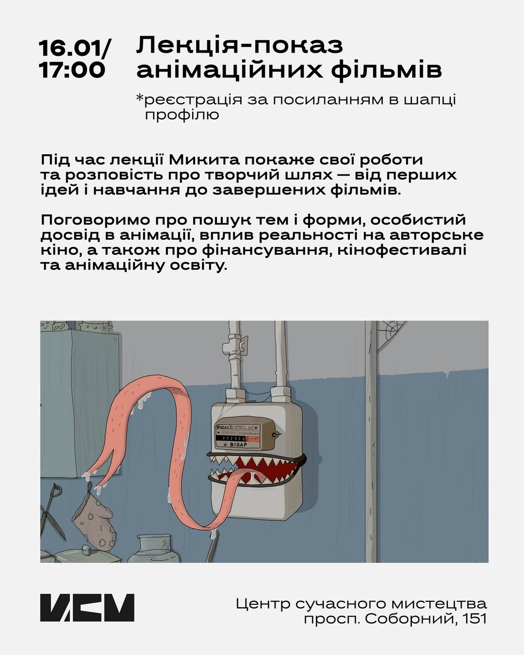 Lecture-screening of animated films and workshop on animated drama by Mykyta Lyskov @mykytalyskov, a director and author of animated short films from Dnipro.