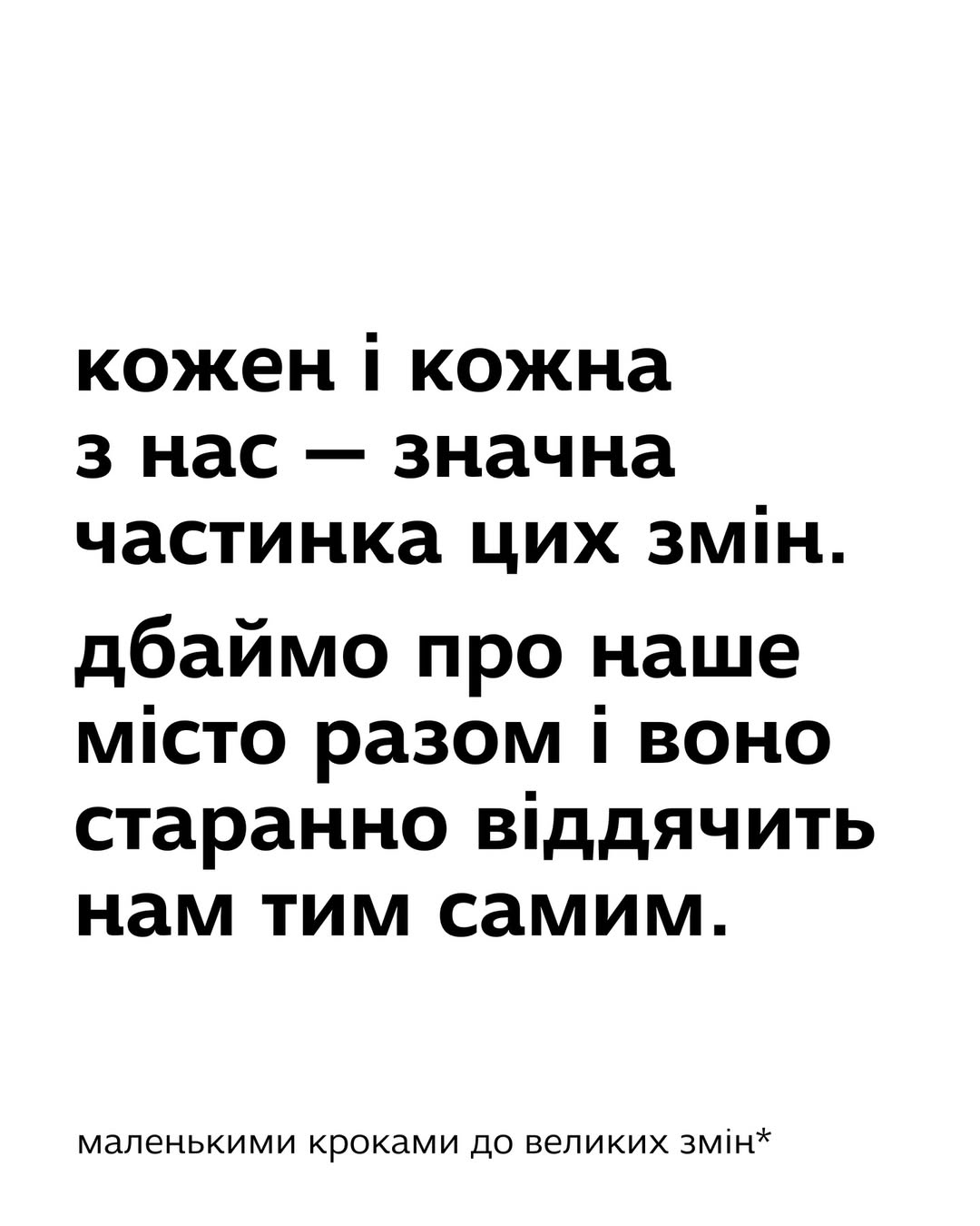 Хаотичні вивіски змінюються на сучасні, старі будівлі отримують нові змісти, занедбані парки та дитячі майданчики стають сучасними та безпечними — місто позбавляється візуального шуму і стає охайнішим.