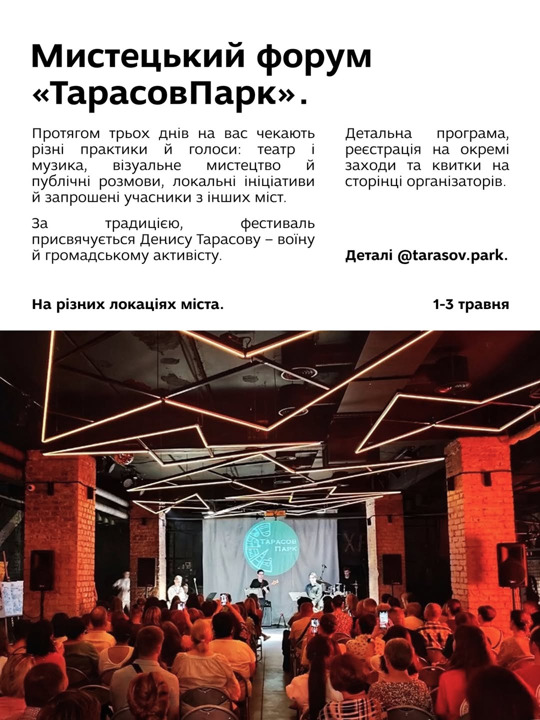 Обирати, як завжди, є з чого: концерти, вистави, вечірки, благодійний забіг, стендап, футбольний матч та мистецький форум — і ще більше пропозицій в каруселі.