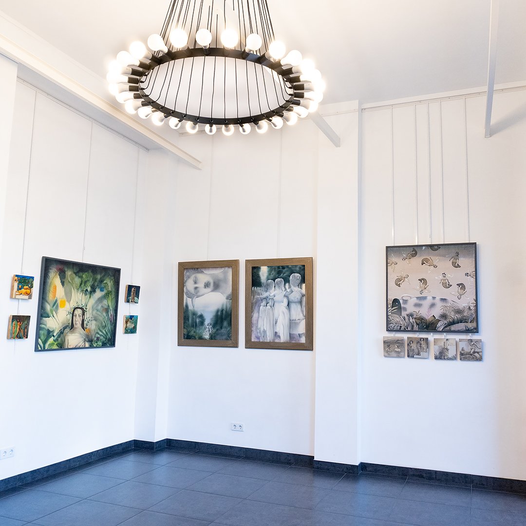 With complicated materials like batik and silk, the artist conveys her special well-recognized look for physicality, plasticity and space. Her works are a grotesque world of secret little rituals and personal mysteries; they are distinguished by their lightness and elegance.