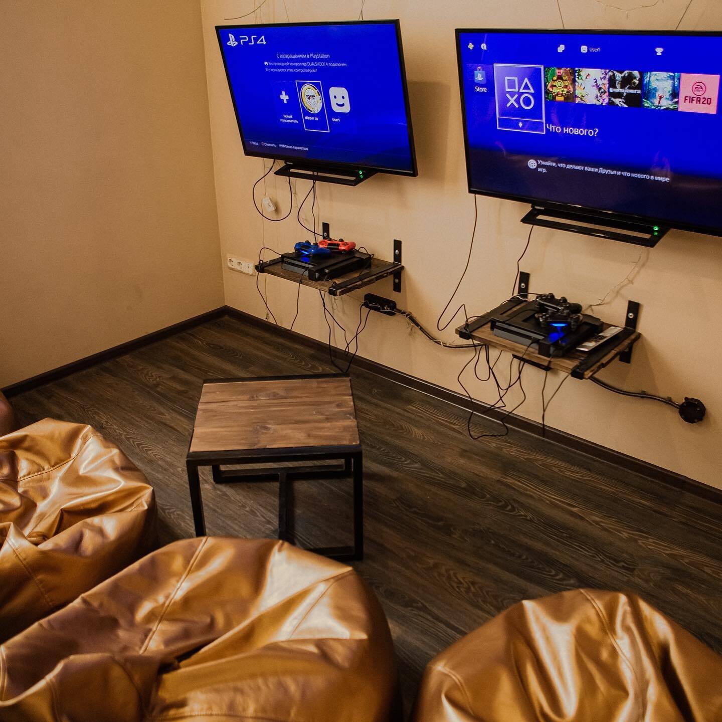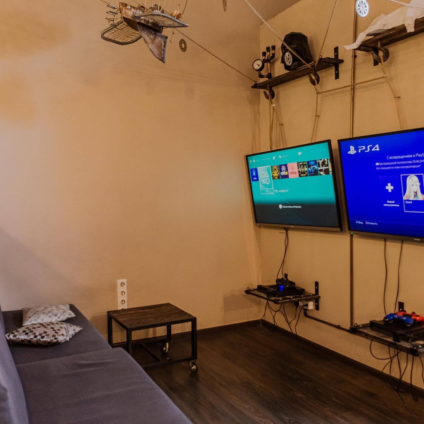 In the cabins of the "Airship" you can: enjoy the cozy lamp atmosphere, relax after a hard work or school day and chat with friends, play board games, we have more than 50 of them! Drown in pillows with a PlayStation 4 joystick and forget about reality ... get excited with the "Kicker" (aka Table Football), romantically spend the evening embracing a girl in a cinema cabin come with children or with the whole family and have fun celebrating the holiday, meet new interesting people !!! For introverts we have a small library and fragrant tea it's quiet here in the afternoon - come and work! you can bring food with you or order directly on board the airship
