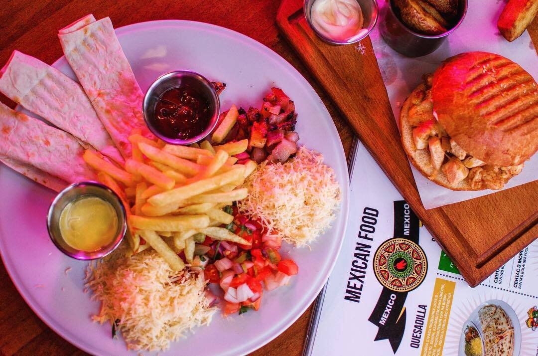 The establishment is located in the "Ukraine" shopping center. The menu offers a plethora of options, including Mexican cuisine dishes such as chimichangas, quesadillas, jalapeño rice, and others.