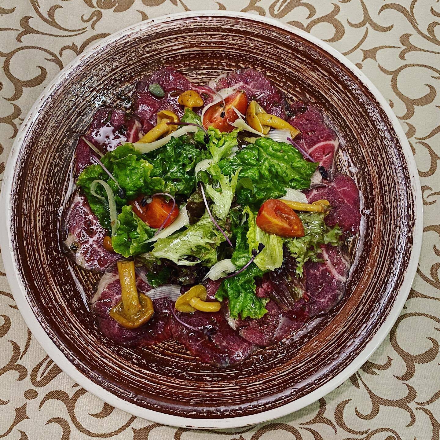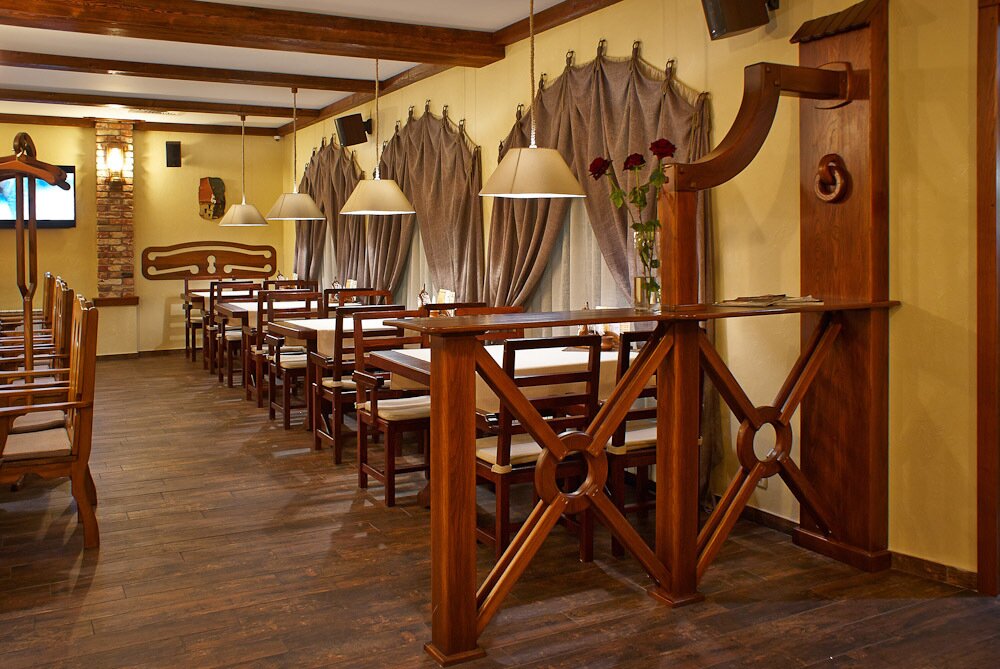 A cafe with European cuisine dishes. The emphasis is on meat dishes and dishes prepared on a charcoal grill. There is a children's menu and a summer terrace.