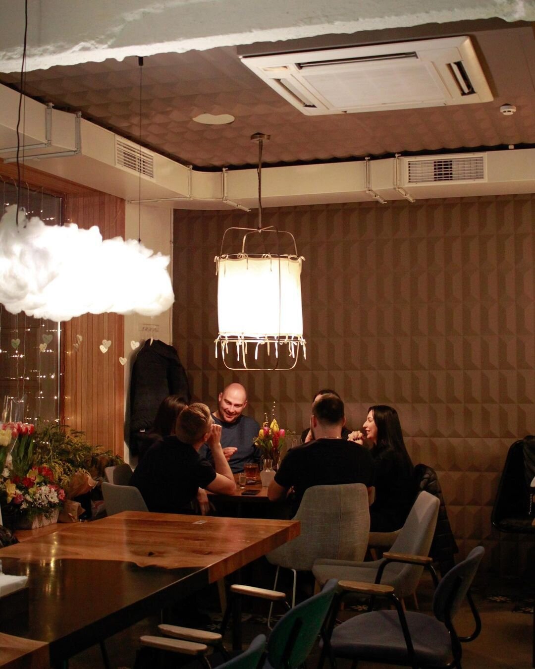 A cafe with signature cuisine and cocktails. The interior is designed in a loft style. The menu offers a wide selection of soups, salads, main dishes, and burgers.