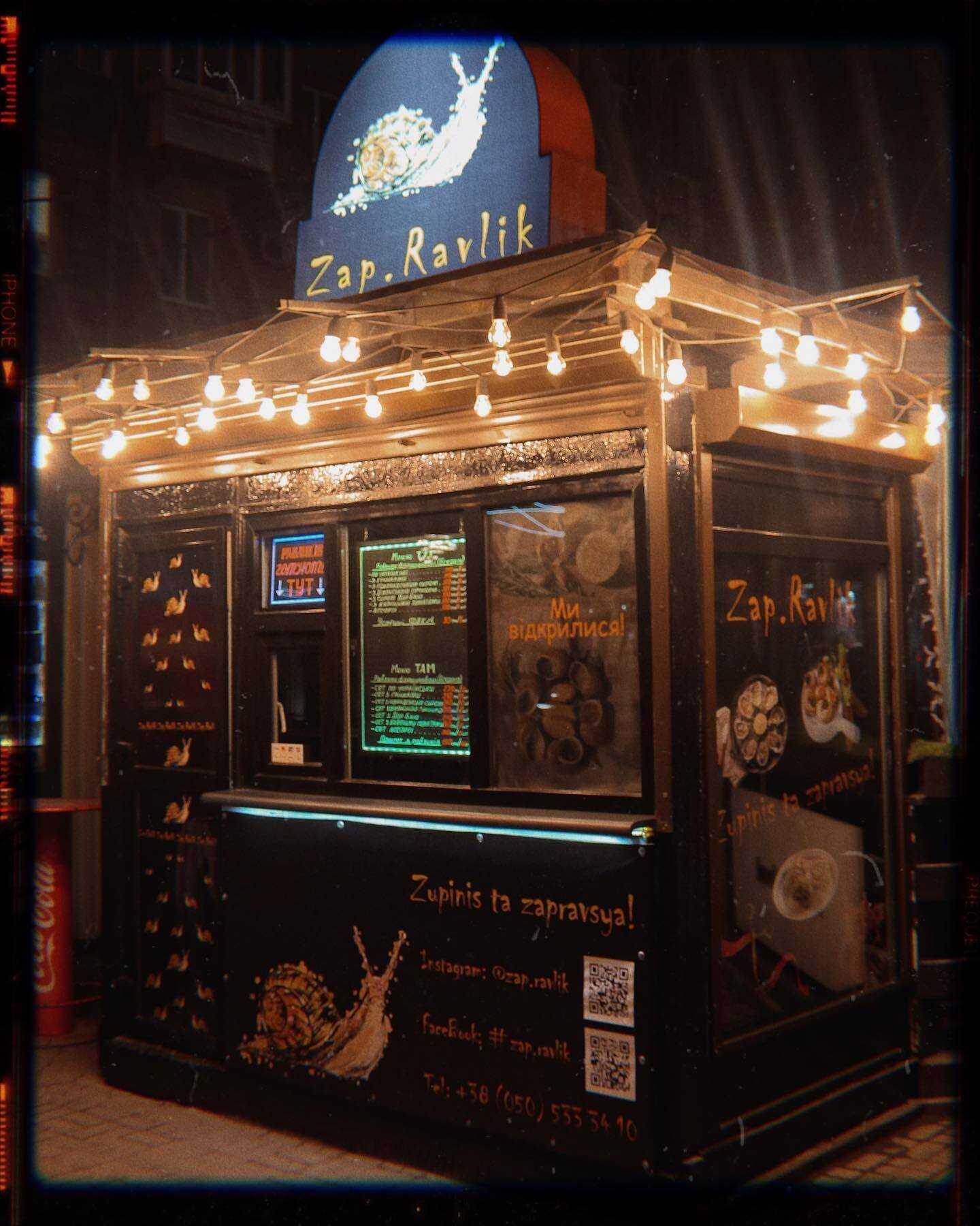 A food court from a local brand specializing in snail production. Here, you can try various escargot variations (Ukrainian style, with croutons, with Dor Blue cheese), and other dishes made with snails. The menu also includes a burger with a snail patty.