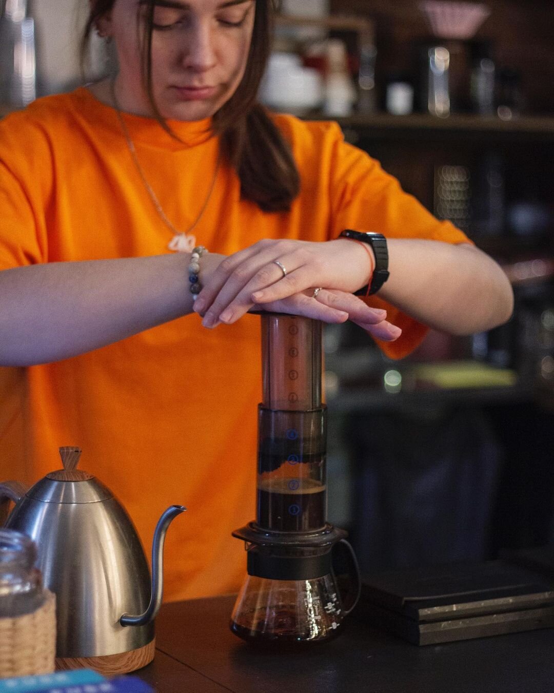 Cozy café near Mayakovskogo Avenue. Homemade desserts, self-roasted coffee. And there's also a really cool outdoor patio.