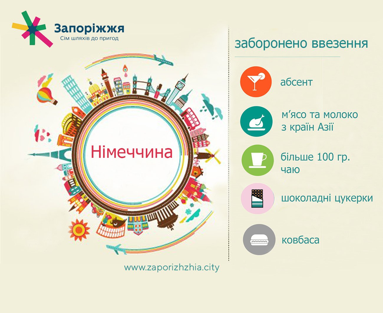 Сьогодні наша інфографіка присвячена Німеччині. Сюди вам не вдасться потрапити з квітами, ковбасою, шоколадними цукерками чи абсентом.