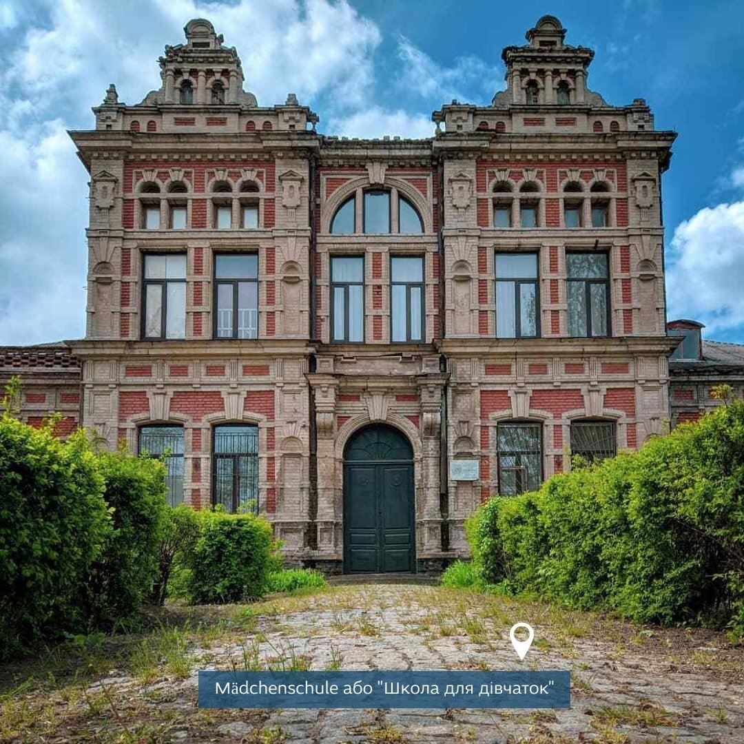 - Медхеншуле або «Школа для дівчаток» (вул. Розенталь, 1 / вул. Істоміна, 18)