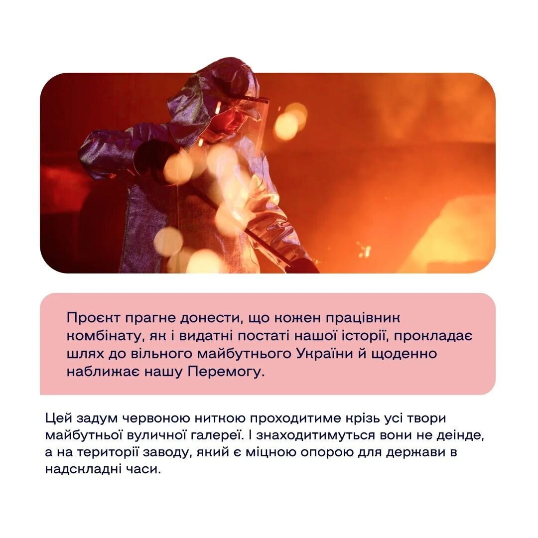 @zaporizhstal реалізовує мистецький проєкт «Кожен з нас — герой. Кожен — частина новітньої історії», що покликаний підтримати працівників підприємства-опори та виразити повагу до їх наполегливої праці у складні для країни часи.