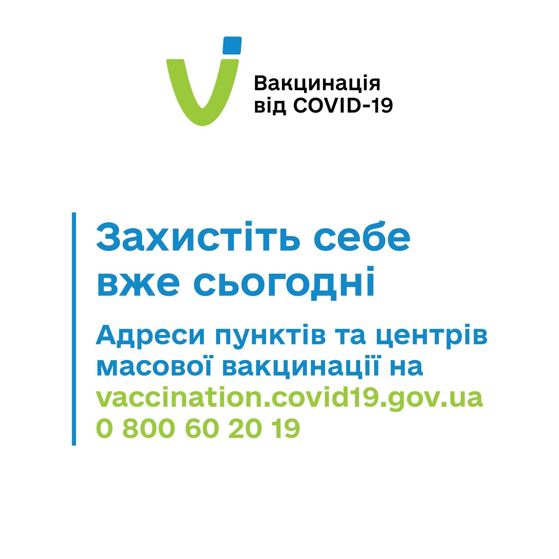 Центри масової вакцинації. На сьогодні у Запоріжжі працює 12 центрів масової вакцинації. Переглянути адреси центрів можна на сайті vaccination.covid2019.gov.ua, а також сайті Запорізької міської ради. Графік роботи центрів вакцинації: щоденно з 08.00 до 20.00. Будь ласка, зверніть увагу, Центри масової вакцинації завершують прийом громадян за 30 хв. до часу завершення роботи в зв'язку з необхідністю спостереження за станом вакцинованих протягом 30 хвилин.