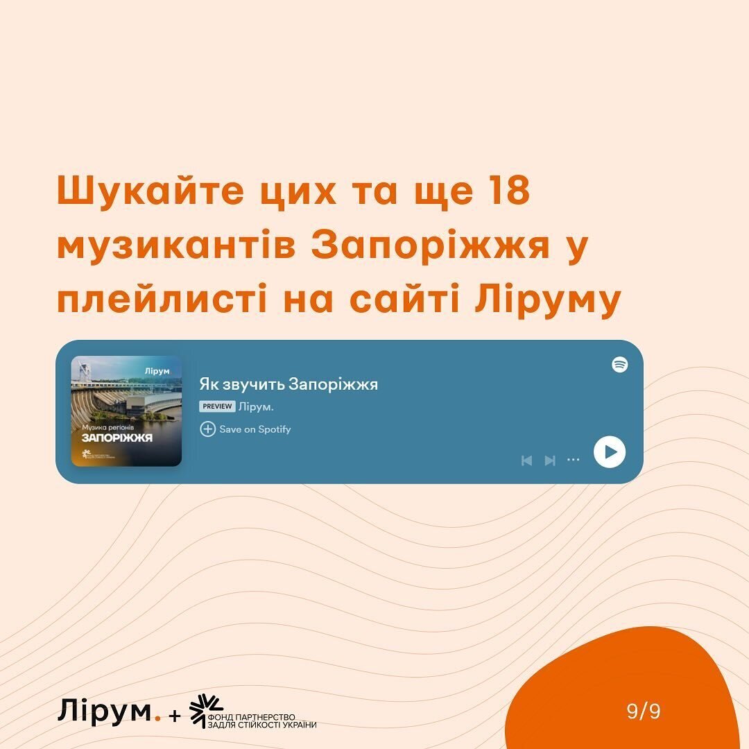 Запоріжжя відоме не тільки найбільшим островом на Дніпрі, але й своїми молодими артистами, які працюють у напрямах шугейзу, постпанку та інді, хоча звідси походять також імениті попзірки та метал-гурти.