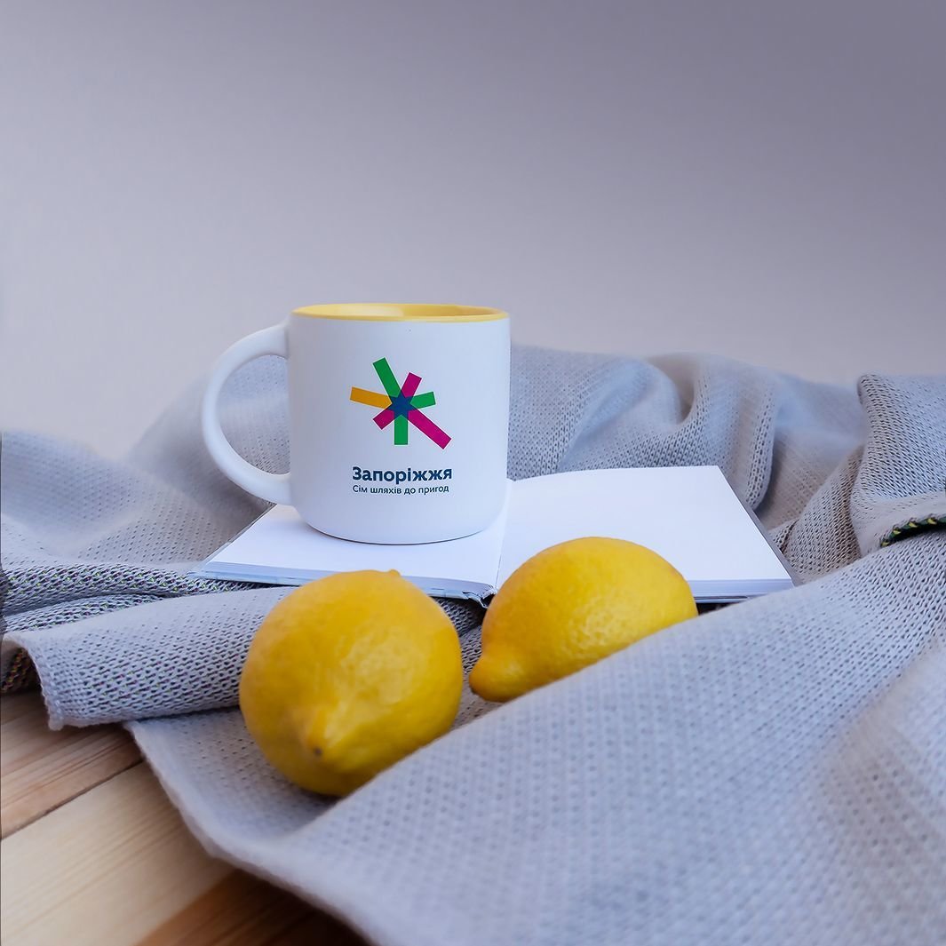 A cup that looks absolutely attractive inside and out. Bright colors, a recognizable Zaporizhzhia’s logo and a convenient shape guarantee the pleasure of your favorite drink.