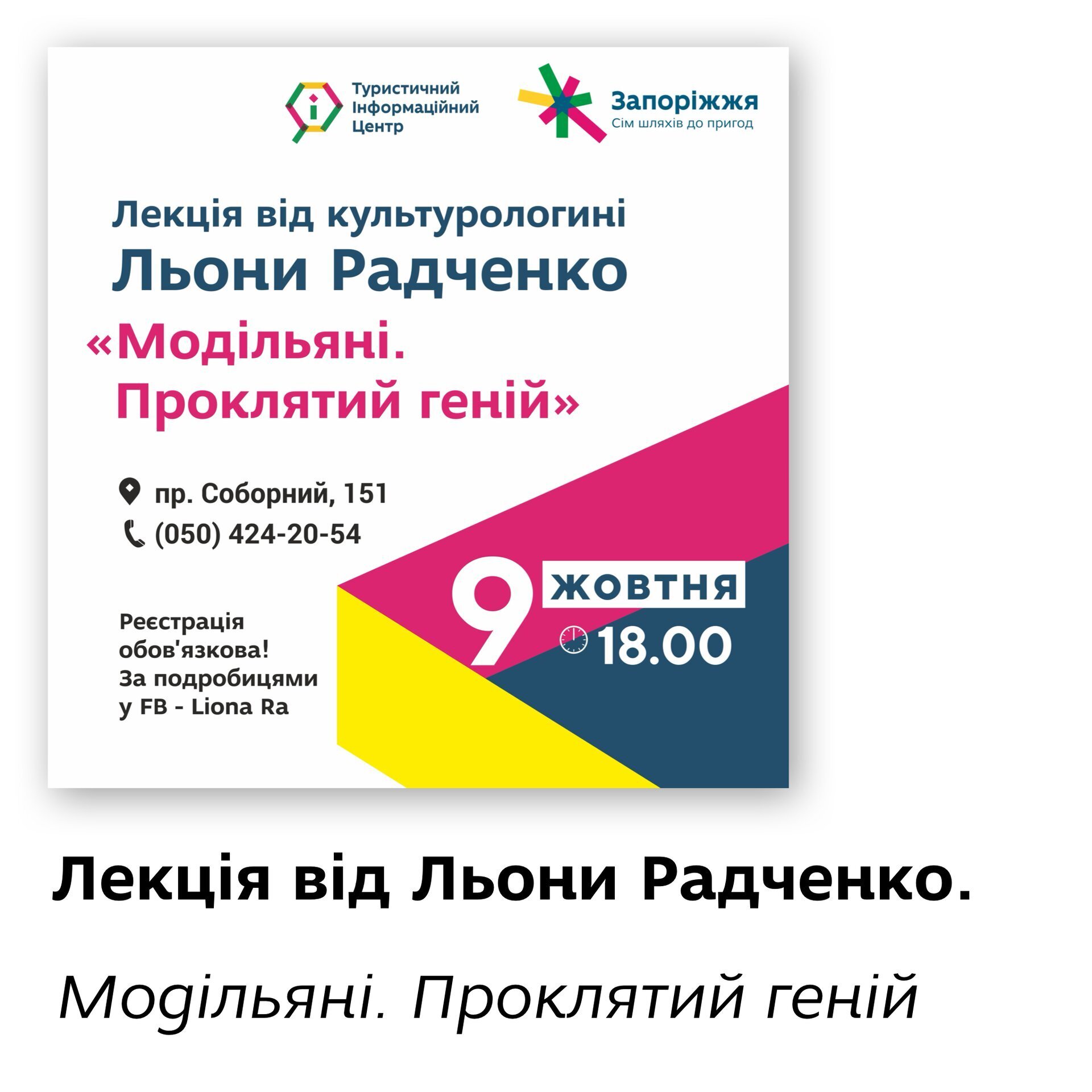 9 жовтня о 18:00 нова лекція від Льони Радченко "Модільяні. Проклятий геній". Ми досі у захваті та приємному естетичному шоці від попередньої лекції про Пікассо, а вже нова зустріч, і нова непересічна особистість.