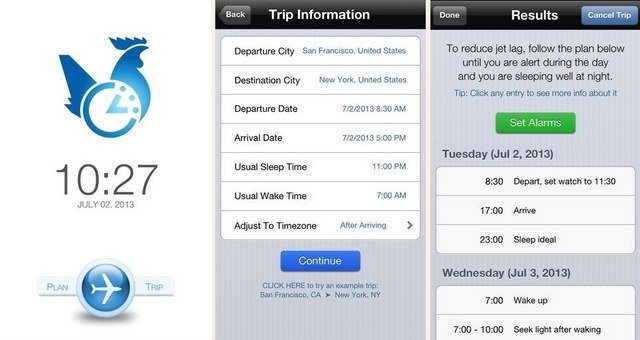 За допомогою цієї програми, доступного як на iPhone, так і на Android, ви зможете без зусиль знайти кращий спосіб їх подолати. Програма розраховує ідеальний графік сну в залежності від обраного вами напрямку. У вас з’являється відмінна можливість підготуватися до приїзду і по прибуттю не втрачати ні хвилини.