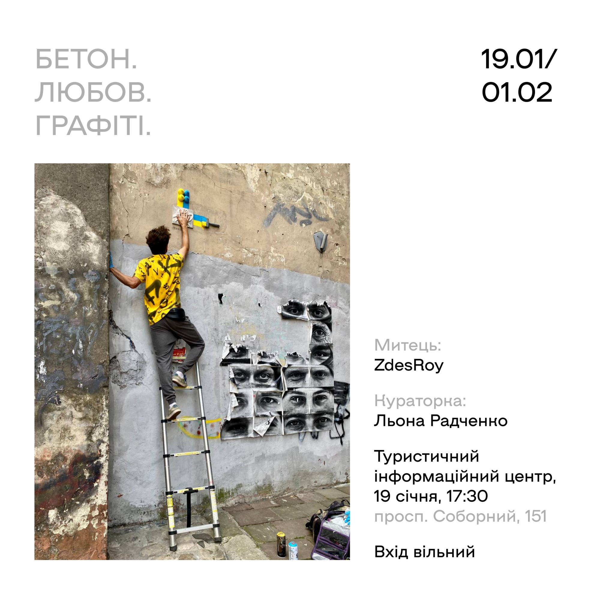«Бетон. Любов.Графіті» від українського митця ZdesRoy @zdesroy та арткураторки Льони Радченко @liona_radchenko - 19 січня, відкриття о 17:30.
