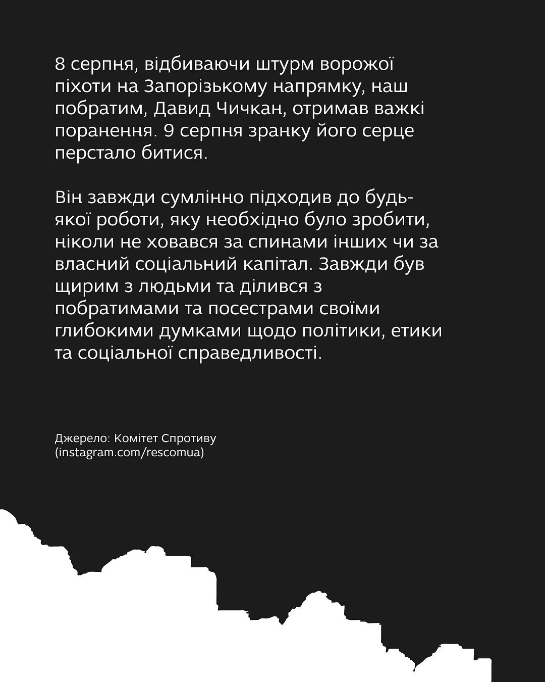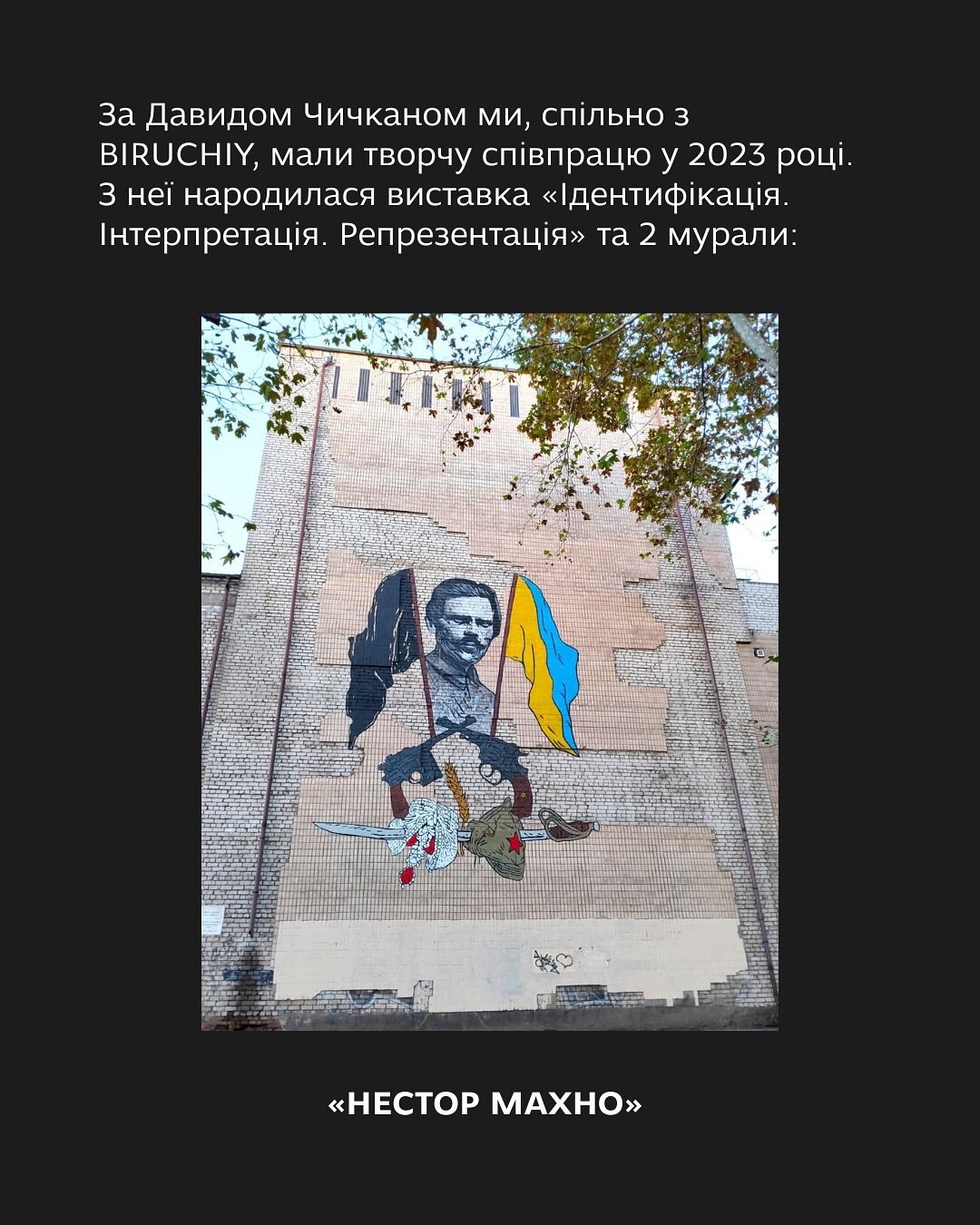 Співпраця з художником Давидом Чичканом подарувала Запоріжжю два мурали: «Нестор Махно» та «Квітка для окупанта». Він був щирою, сумлінною та глибокою людиною.
