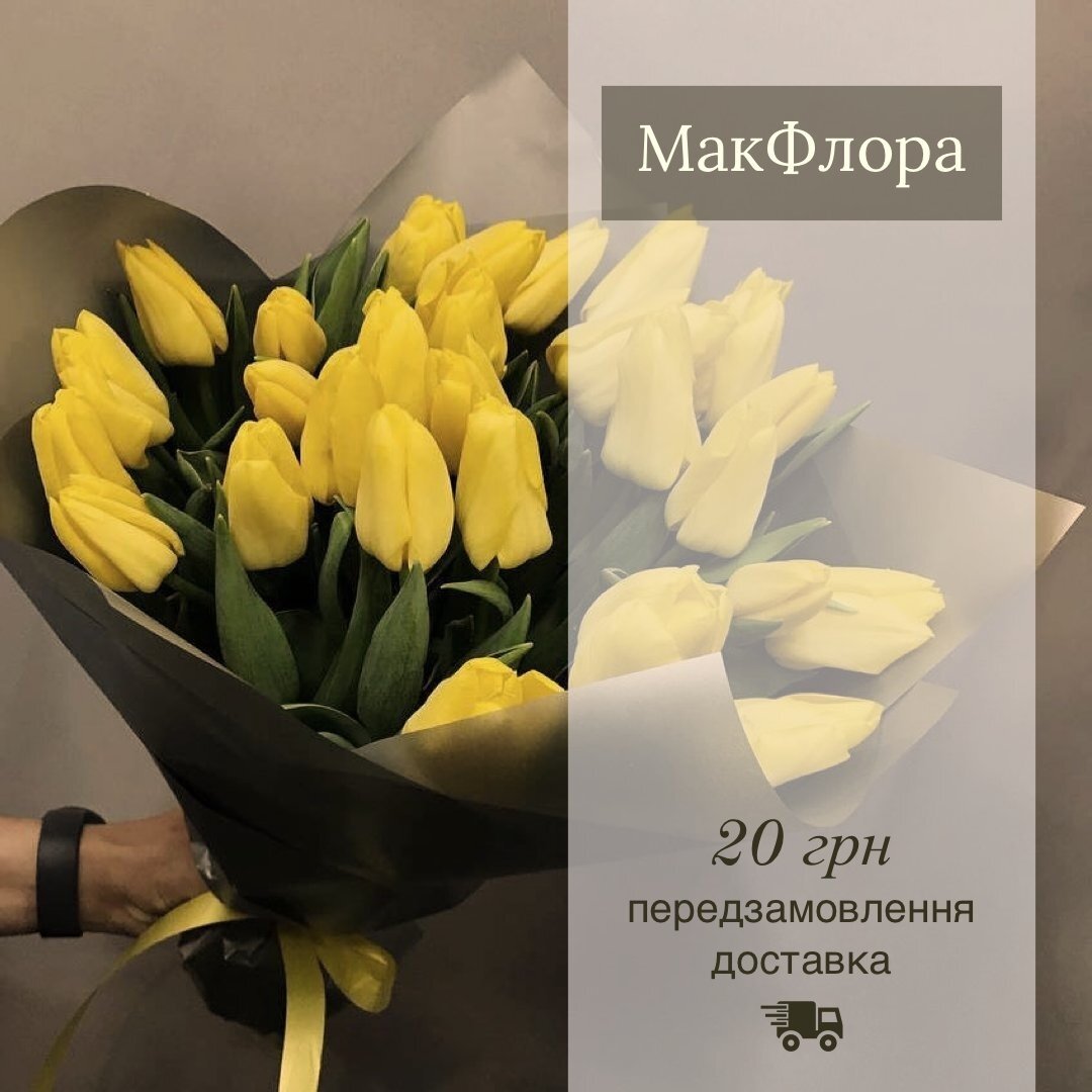 Білі, червоні, жовті, рожеві та фіолетові тюльпани, є послуга доставки