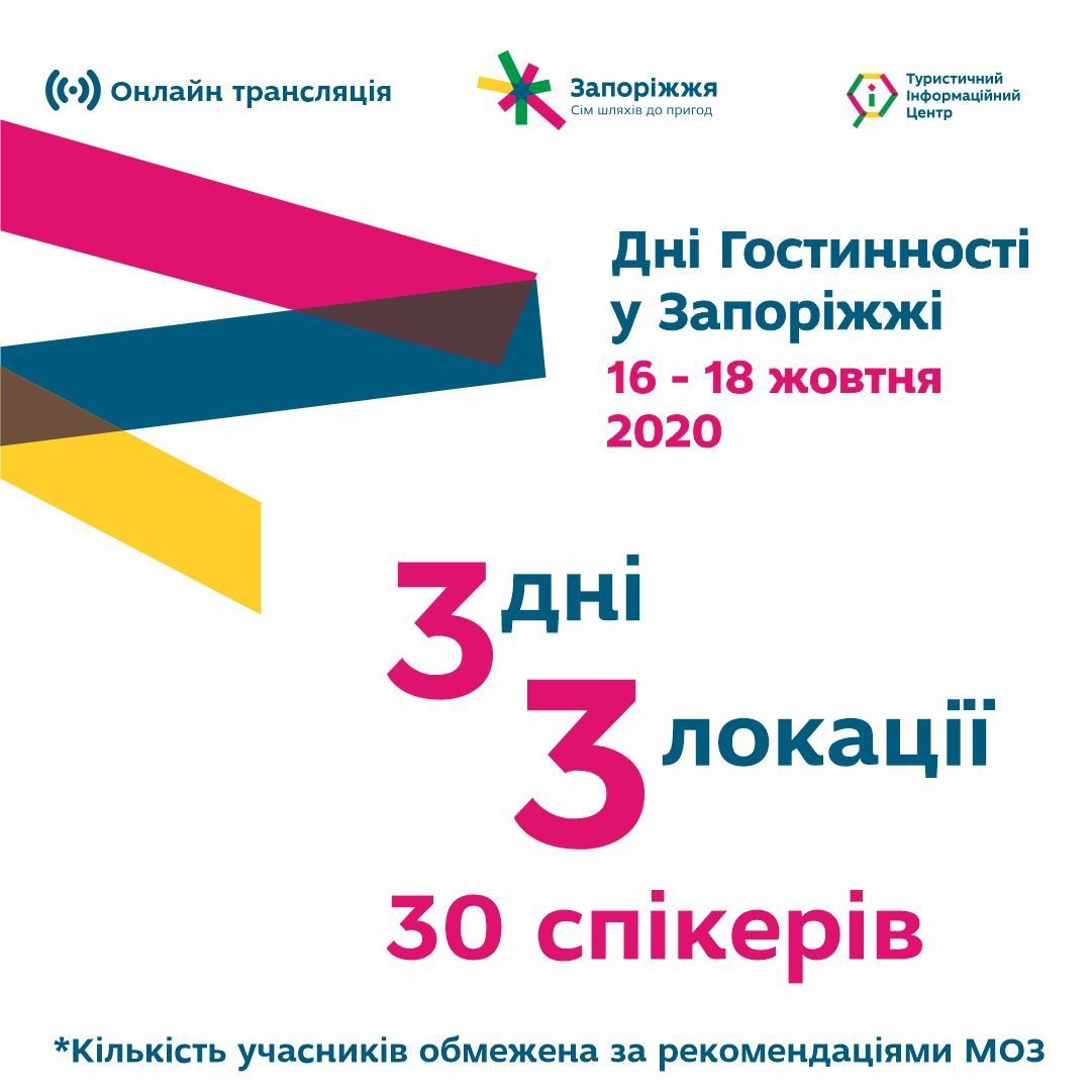 Цього року уся команда наполегливо працювала над тим, аби Дні гостинності відбулися у Запоріжжі. Враховуючи рекомендації і правила наш традиційний триденний форум проходитиме у off-line та on-line форматі, але, нажаль, ми вимушені обмежити кількість запрошених гостей. Аби отримати інформацію стосовно off-line участі у якості гості будь ласка зв’яжіться із нашими координаторами у Туристичному інформаційному центрі за телефоном: 050 424 20 54.