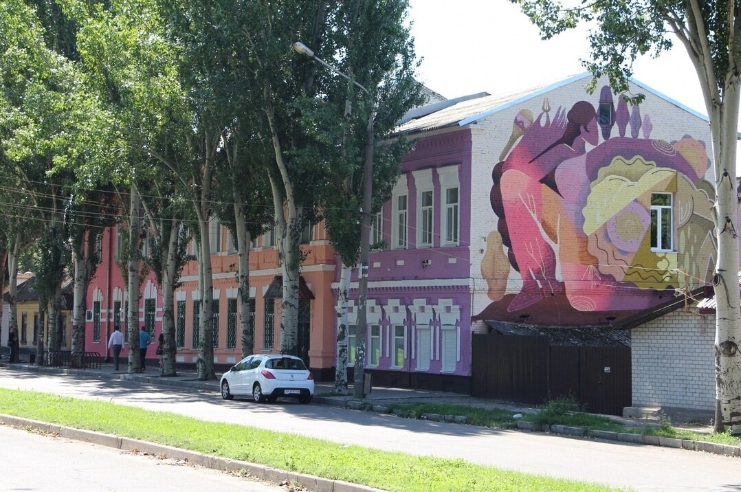 Остання локація нашої прогулянки знаходиться напроти. Це маєток Григорія Кацина - відомого в Олександрівську техніка, за проєктами якого зводили чимало будівель міста. Маєток прикрашають маскарони у вигляді жіночих облич з квітами. Це одні з небагатьох декоративних рельєфів у формі масок, які ще можна побачити на вулицях міста.