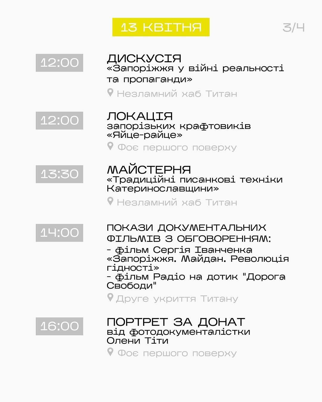 Упродовж двох днів фестивалю працюватимуть запорізькі крафтовики, проходитиме благодійний аукціон на підтримку наших захисників та захисниць, а також буде представлена виставка документальних світлин відомої запорізької фоторепортерки Катерини Клочко @kateryna_klochko