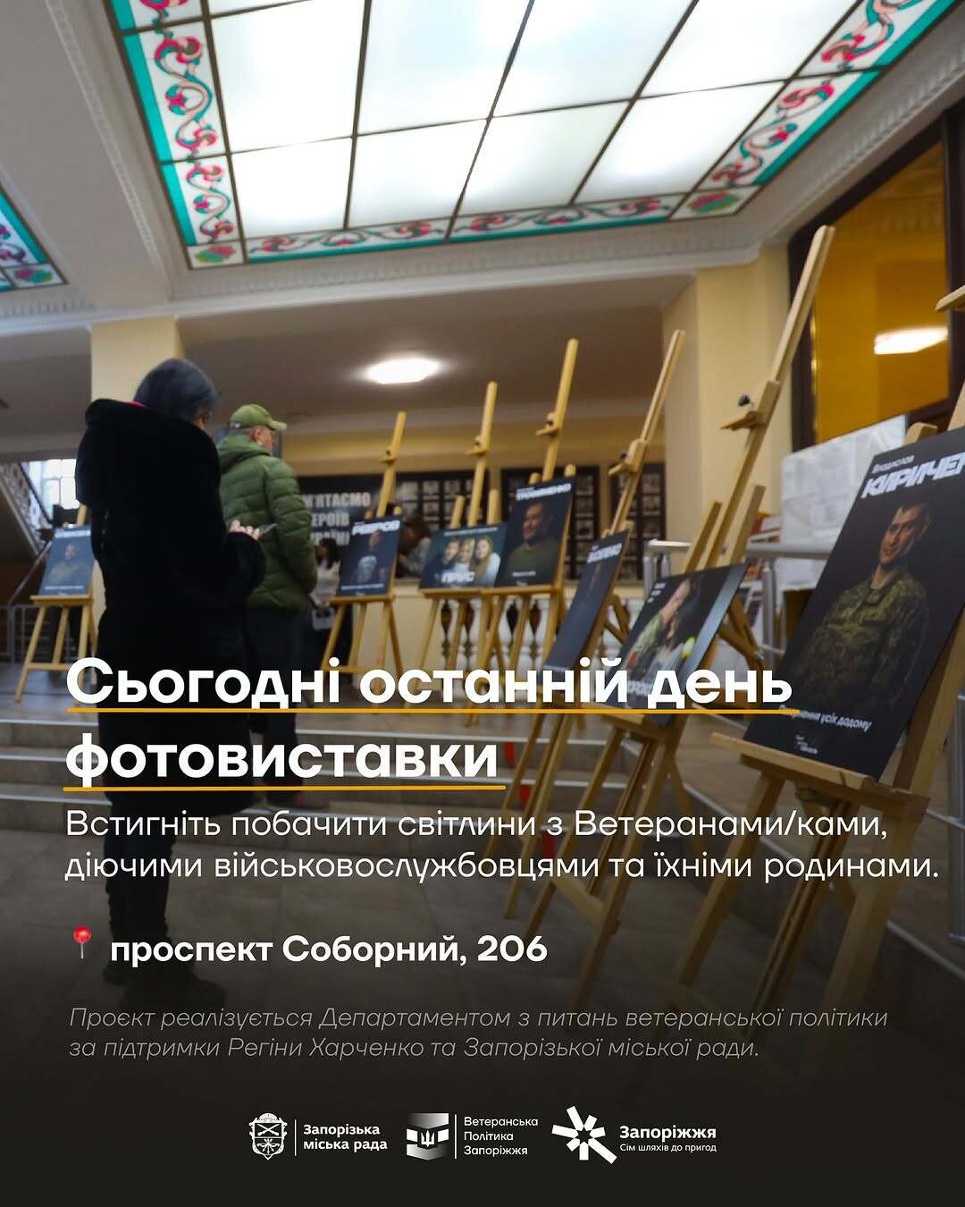 Сьогодні остання можливість побачити фотороботи за адресою: проспект Соборний, 206. Приділіть час та висловіть вдячність, прийшовши на виставку.