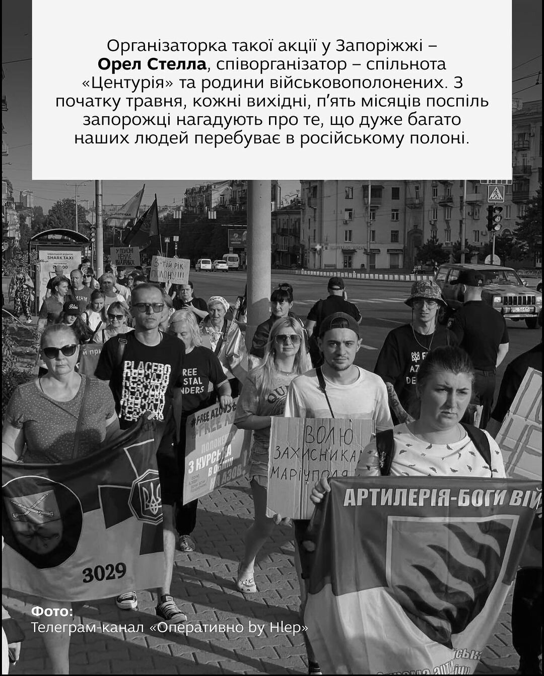 Організатор такої акції у Запоріжжі – Орел Стелла, співорганізатором являється спільнота «Центурія» та родини військовополонених. З початку травня, кожні вихідні, пʼять місяців поспіль запорожці нагадують про те, що дуже багато наших людей перебуває в російському полоні.
