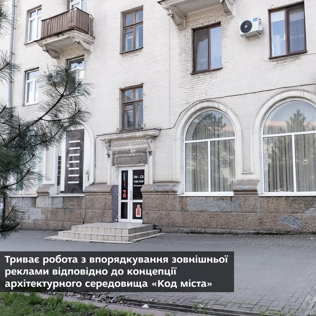 Триває робота з впорядкування зовнішньої реклами відповідно до концепції архітектурного середовища «Код міста». З фасадів будинків демонтують незаконно встановлені рекламні конструкції та вивіски.