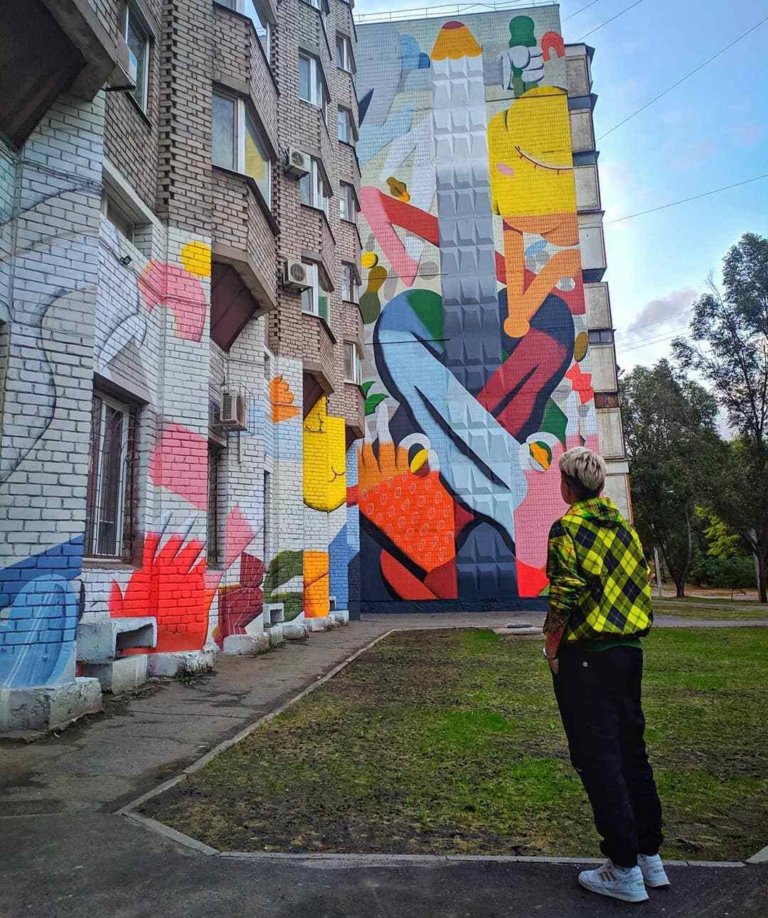 Мурал "Тато з донькою", дитяча школа мистецтв № 2, вул. Новокузнецька, 18А