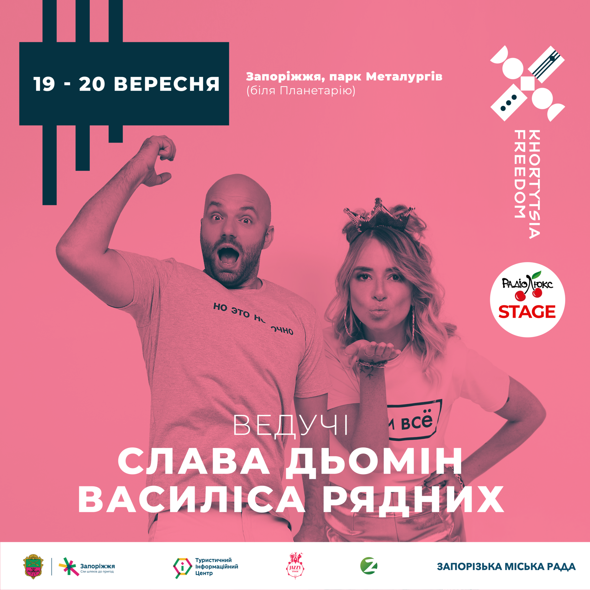 За гарний настрій на Lux Stage Khortytsia Freedom відповідають - зіркові ведучі Слава Дьомін та Василіса Рядних.