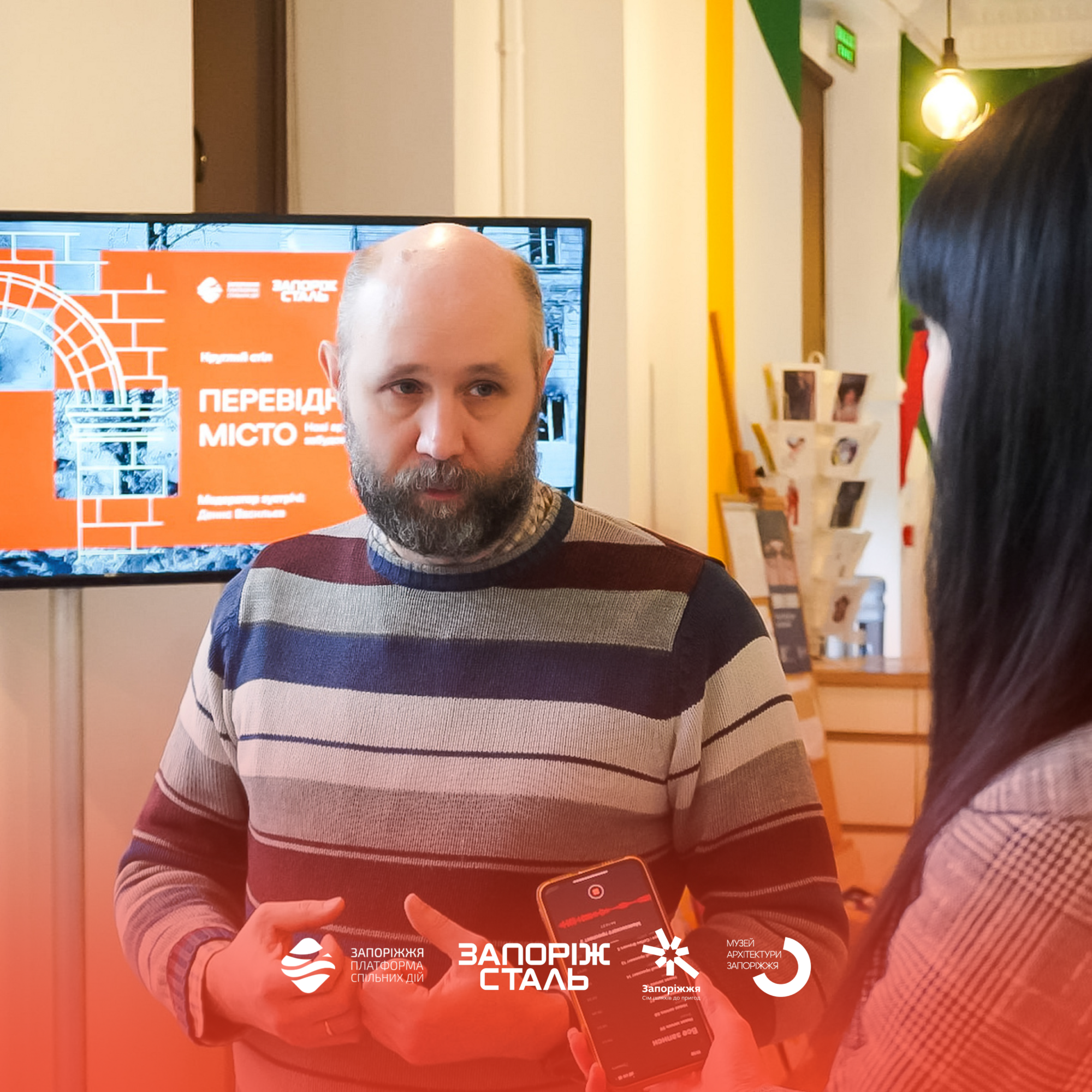 Модератором зустрічі був Денис Васильєв @denys.vasyliev — гід, екскурсовод Музею Феноменальної Сили, громадський діяч, працівник Запорізького міського центру народної творчості та культурно – освітньої роботи «Народний дім».