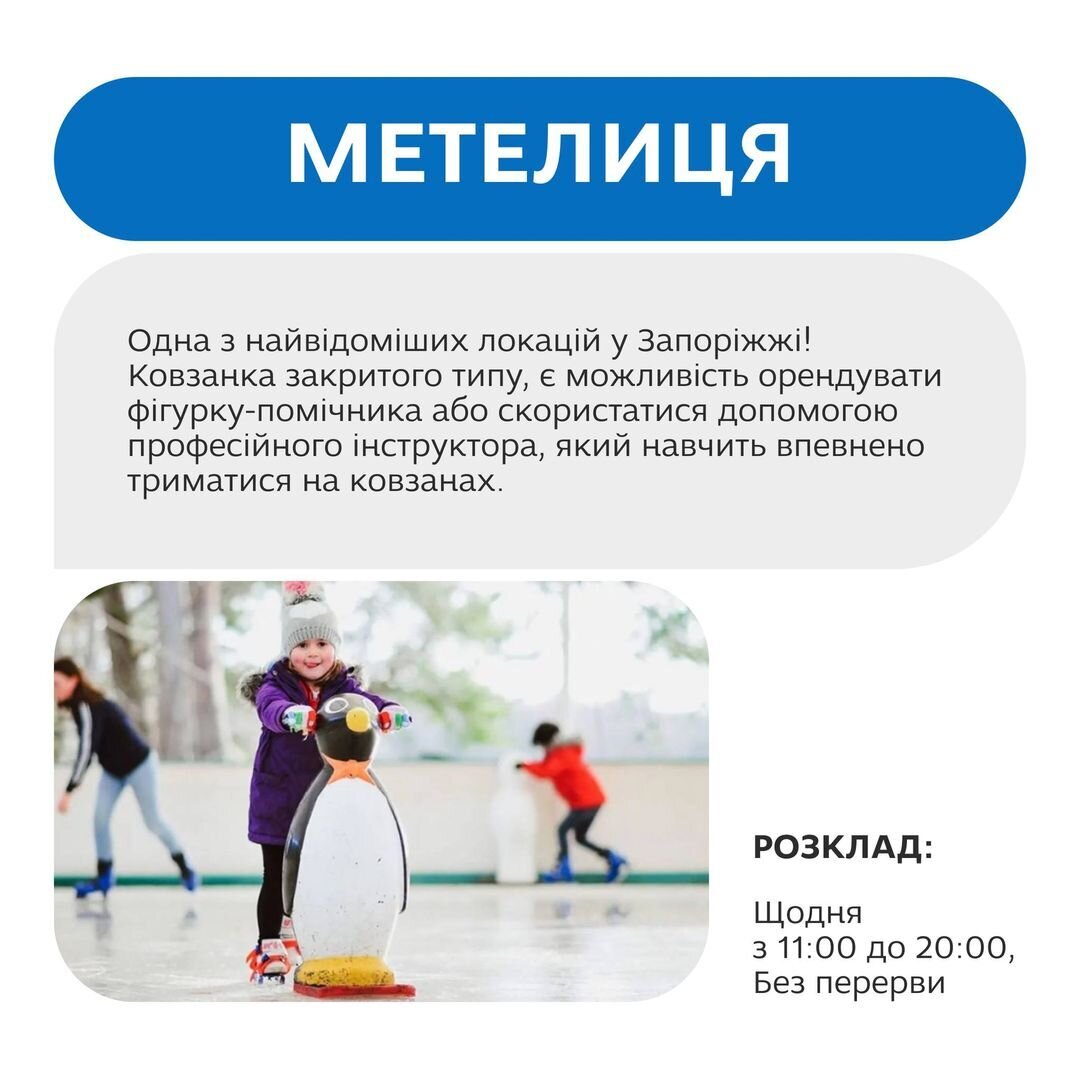 А ми своєю чергою поділимося ковзанками Запоріжжя, що працюють. Зберігайте!