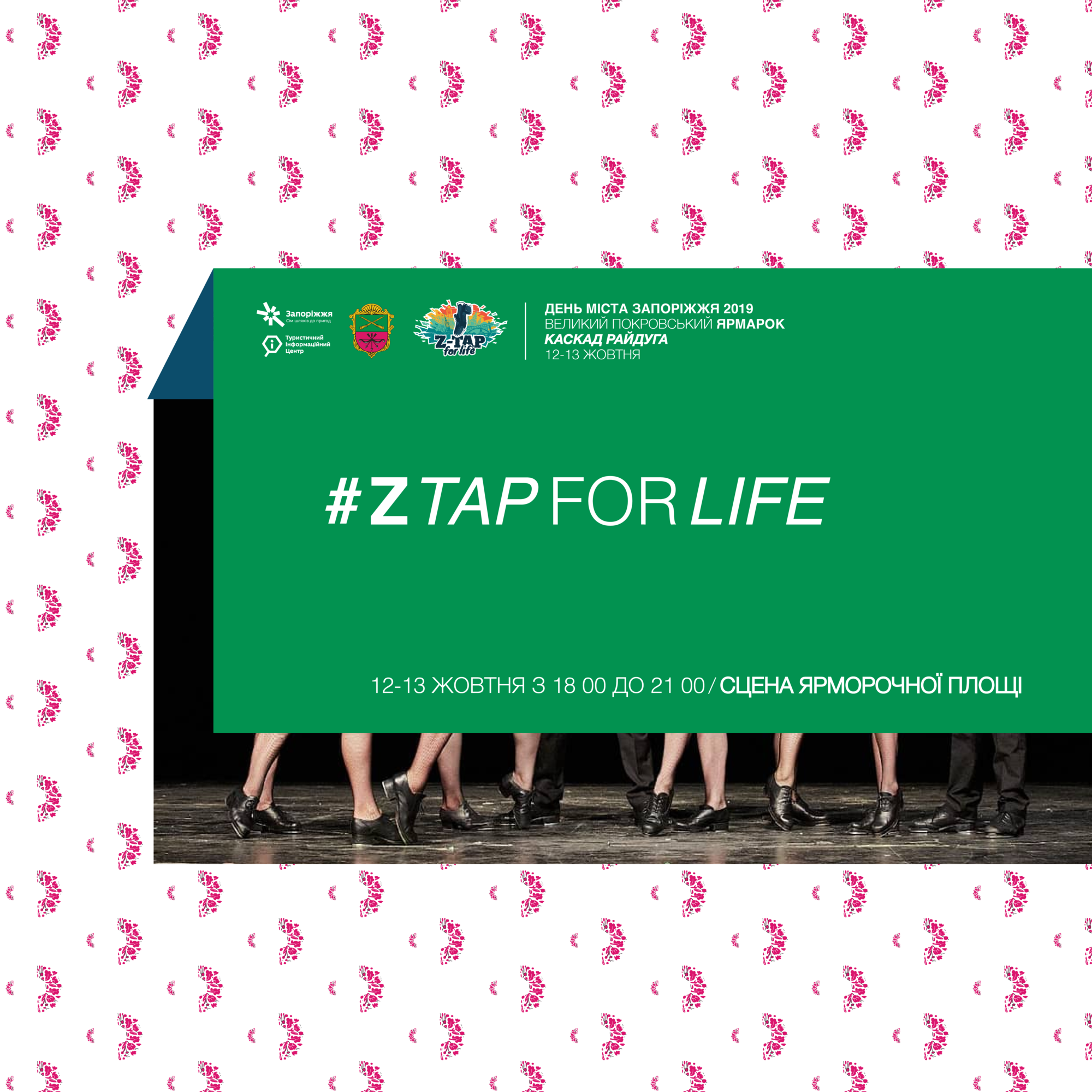 13 жовтня, о 18.00, на каскаді фонтанів Райдуга, на запоріжців та гостей міста чекає унікальне «Irish Show» від учасників перкуссійно-танцювального простору «Z-TapforLife». «Irish Show» - це поєднання ірландського танцю та сучасної музики у єдиному театралізованому перформансі. На вас чекають ексклюзивні шоу-номери від учасників простору, таємничий світ лепреконів та багато іншого.
