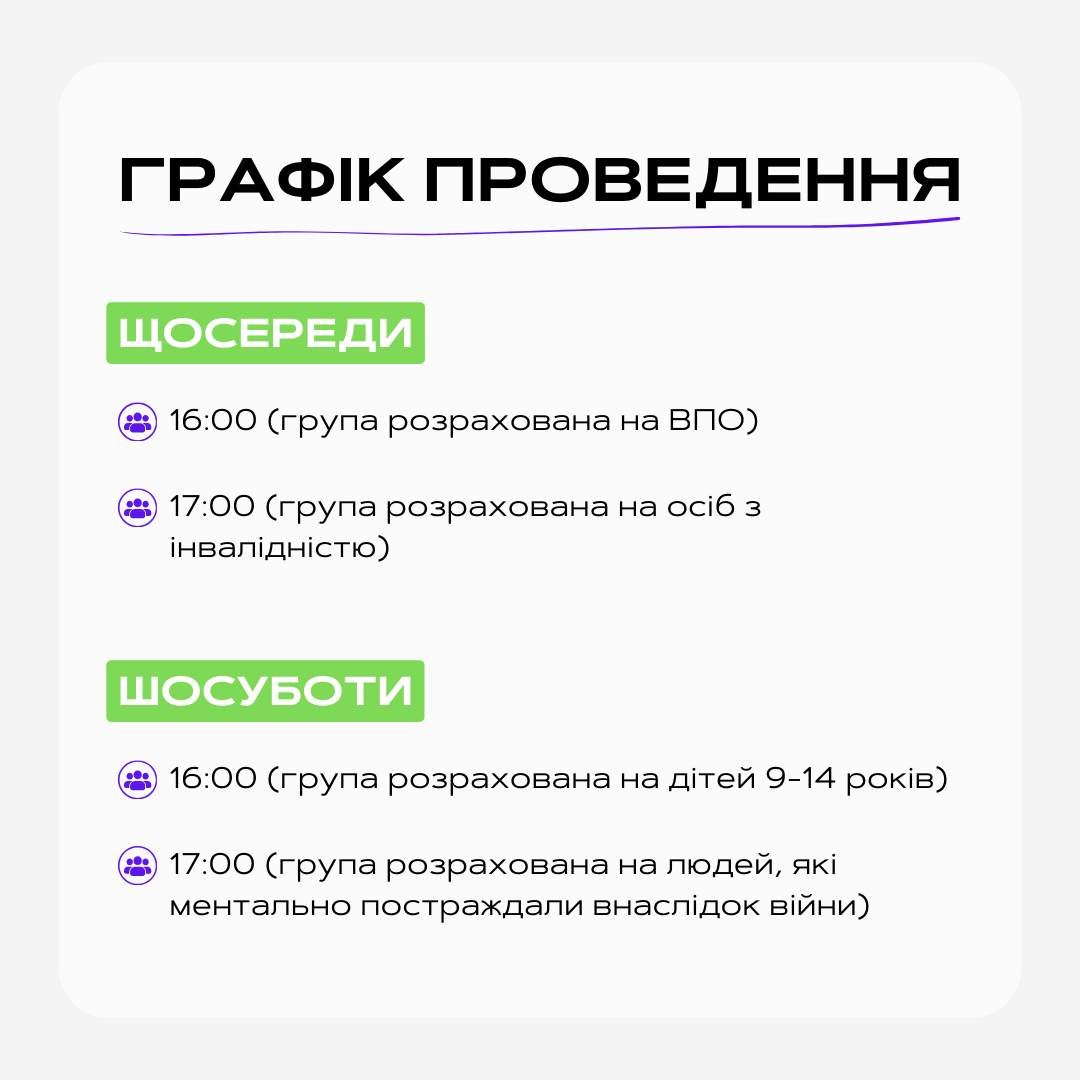 Групова робота дозволить гостям відрефлексувати щодо власних проблем, створити коло однодумців та познайомитися з новими людьми.