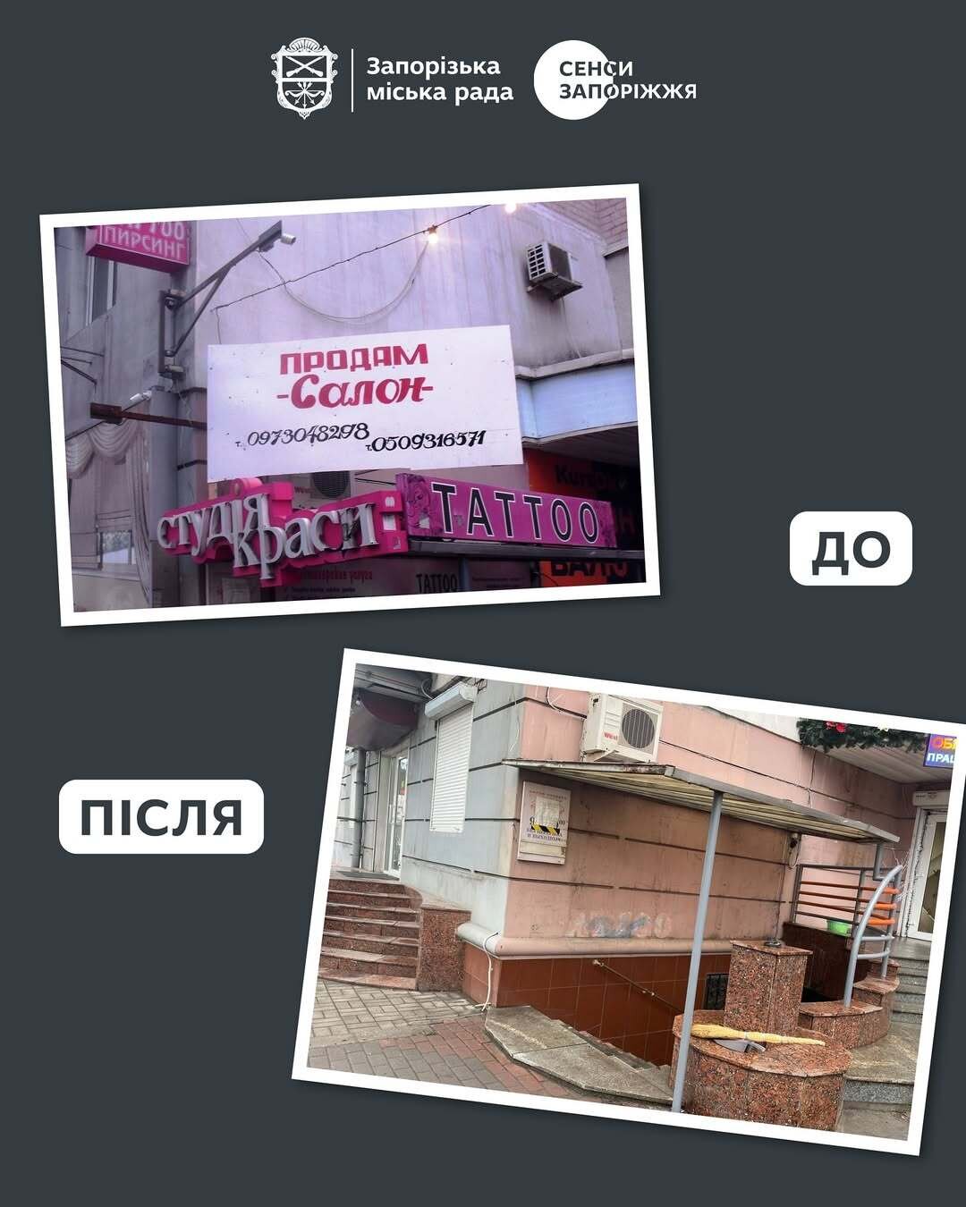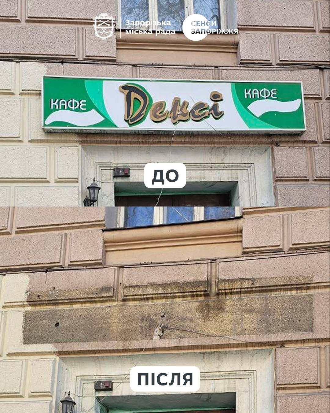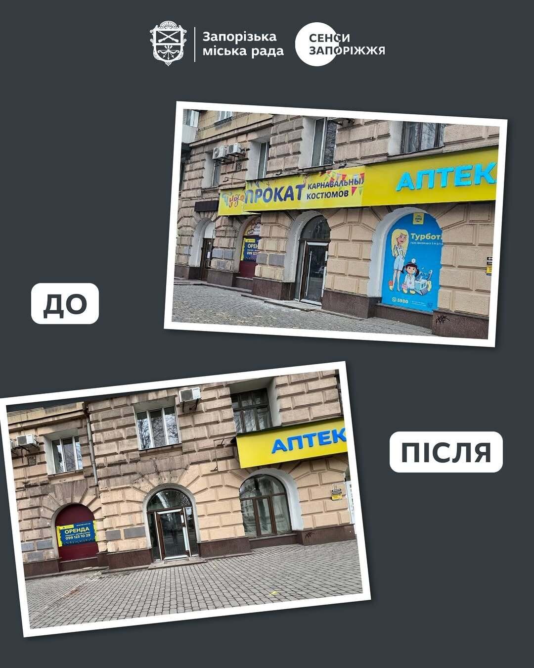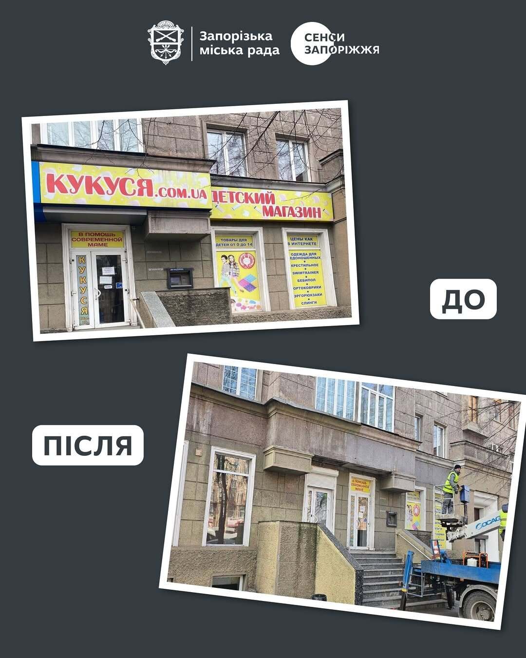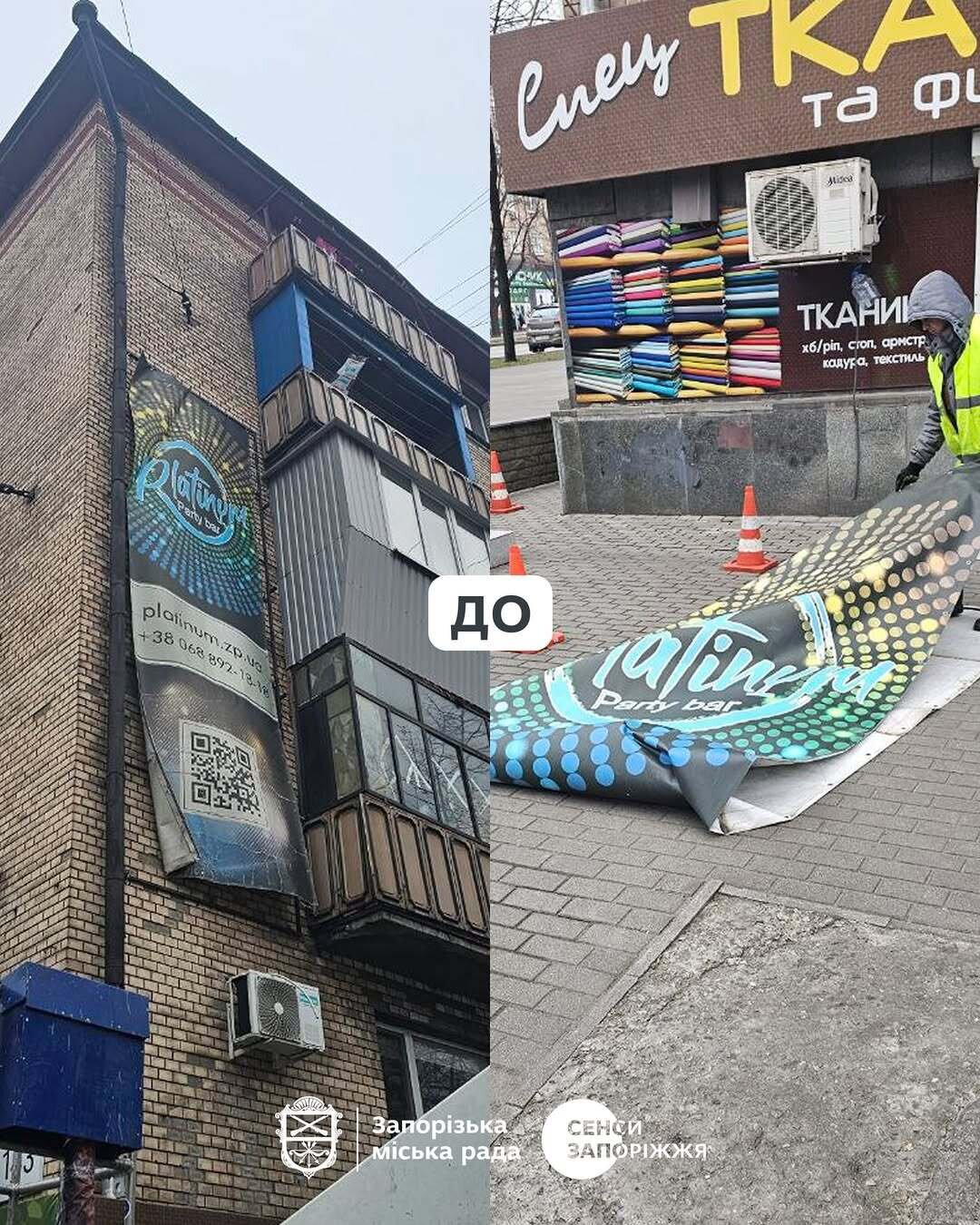 Лише за першу половину лютого Інспекцією з благоустрою демонтовано 21 елемент незаконної реклами. Роботи проводяться в рамках реалізації концепції «Сенси Запоріжжя» та напряму «Європейський проспект».