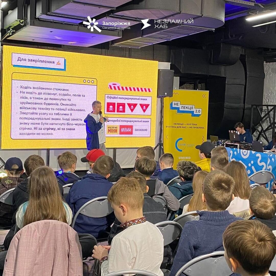 «НеЛекції» – це офлайн-зустрічі зі школярами, де Олександр Педан та Василь Байдак говорять про мінну безпеку, важливість ментального та фізичного здоров’я, а також протидію сексуальному насиллю.