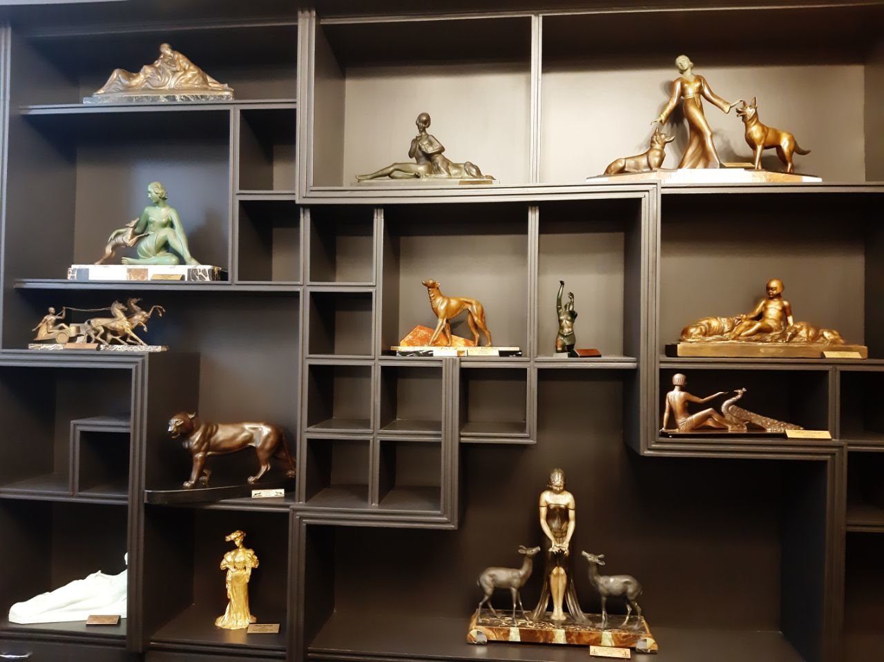 На виставці розміщено понад 40 декоративних скульптур. Легкі, пластичні, витончені форми поєднали в собі відбитки різних культур і втілилися в коштовних матеріалах (бронзі, слоновій кістці, мармурі, оніксі та кракелюрній кераміці). Ар деко - це в першу чергу стиль вишуканої краси та дорогого шику. Деякі зі скульптур відображають різні напрямки, продовжуючи естетику єгипетського стилю, стилю ампір.