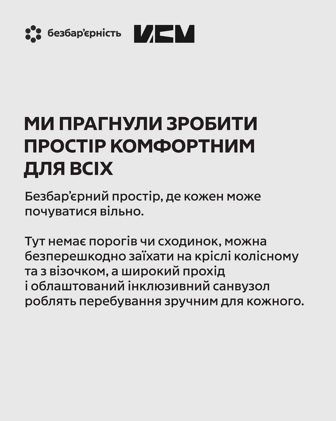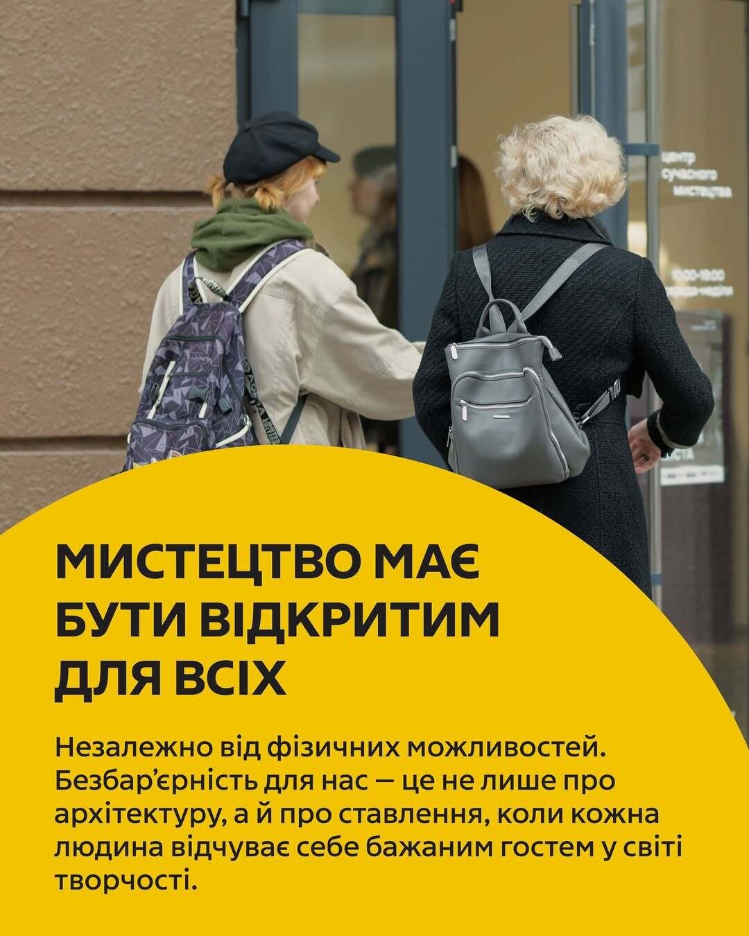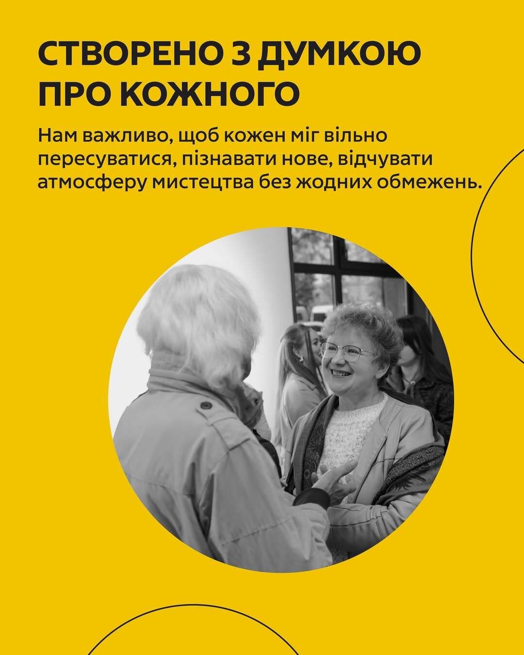 Простір продуманий так, щоб кожен відвідувач міг без перешкод зануритися в атмосферу мистецтва. Ми працюємо над тим, щоб сучасне мистецтво було доступним усім.