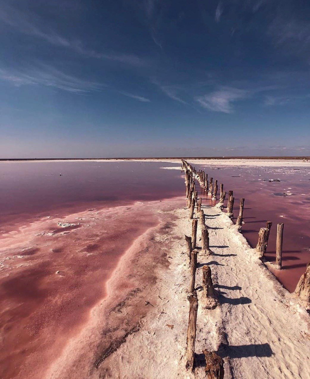 Лемурійське озеро на півдні Херсонщини має незвичайне рожеве забарвлення. Своїм яскравим кольором воно приваблює туристів зі всієї України та навіть світу.