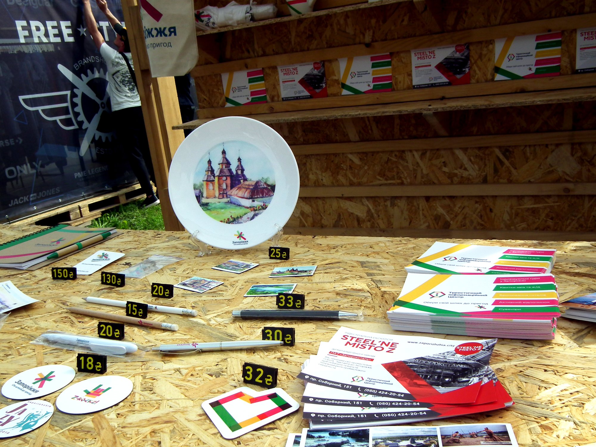 Туристичний інформаційний центр Запоріжжя привіз на Пікнік зовсім нову сувенірну продукцію з яскравою айдентикою міста. Листівки, магніти, кружки і тарілки із символікою, що вже стала впізнаваною в Україні та різних куточках світу.