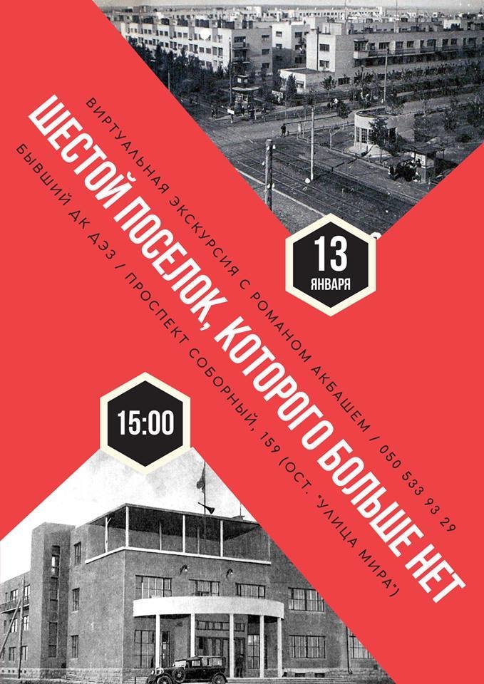 У віртуальну подорож крізь час запрошує запорізький краєзнавець Роман Акбаш. Цього разу відбудеться віртуальна екскурсія "Шосте селище, котрого більше немає". Пізнати про 30-40-50-і роки минулого століття, подивитися на архітектурні об'єкти того часу і побачити на власні очі Шосте селище, яке вже неможливо пізнати вживу.