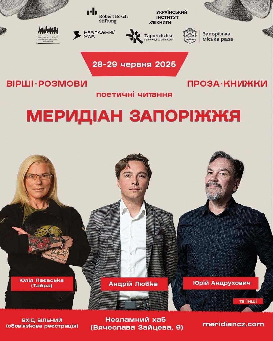 28–29 червня в Запоріжжі втретє відбудуться «Поетичні читання Меридіан Запоріжжя», який організовує Міжнародна літературна корпорація Meridian Czernowitz @meridian_cz