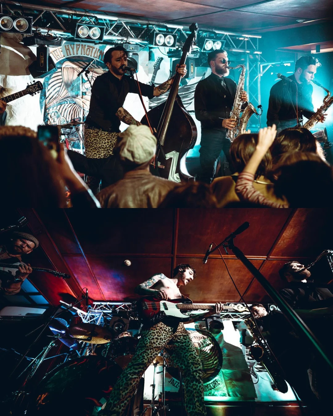 THE HYPNOTUNEZ несуть із собою дивовижну концертну енергетику, яка поєднує в собі бездоганне поєднання свінгу, джазу та інших елементів ретро стилю. Це доповнюється дикою панкроковою силою та спонтанністю. Одного разу ви відчуєте себе у фільмі нуар, а наступного — на панк-концерті. Класичні інструменти біг-бенду з контрабасом, гітарою, тенор-саксофоном, баритон-саксофоном, кларнетом, барабанами в поєднанні з «брудним» андеграундним звучанням одразу змушують танцювати.