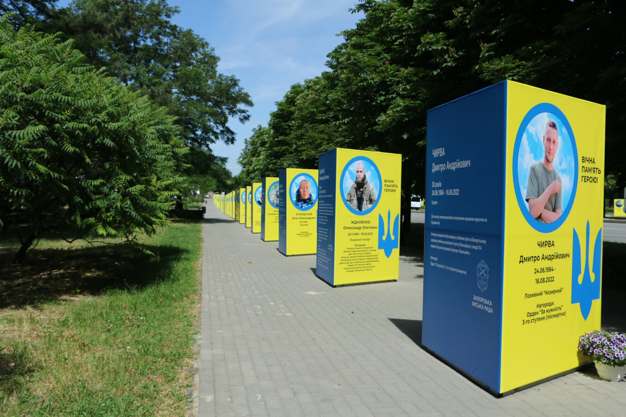 Алея Героїв встановлена за підтримки Запорізької міської ради, меценатів, підприємців та запоріжців. Ця ініціатива вшановує людей, які боролися до останнього. Заради нас з вами.