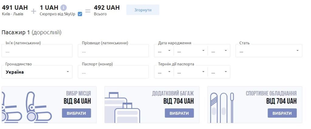 Український лоукостер SkyUp Airlines добавив опцію купівлі сюрпризу за 1 гривню, яку можна оформити під час бронювання рейсу.