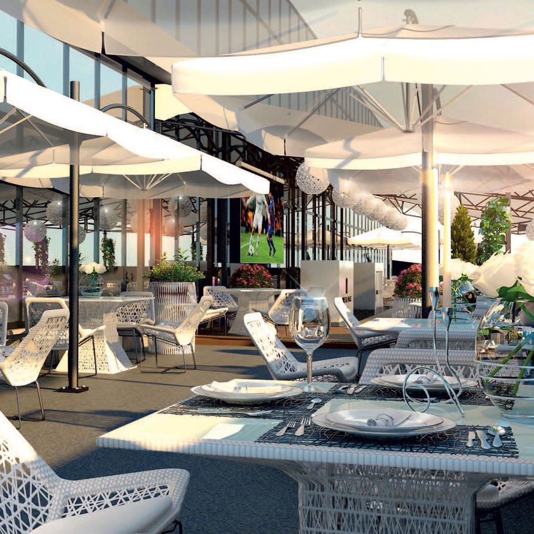 Теплої пори тут приємно насолодитися прохолодним коктейлем і елегантною атмосферою. Це чудове місце аби зустрітися з колегами, друзями, просто так за чашкою кави, або задля особливої нагоди.