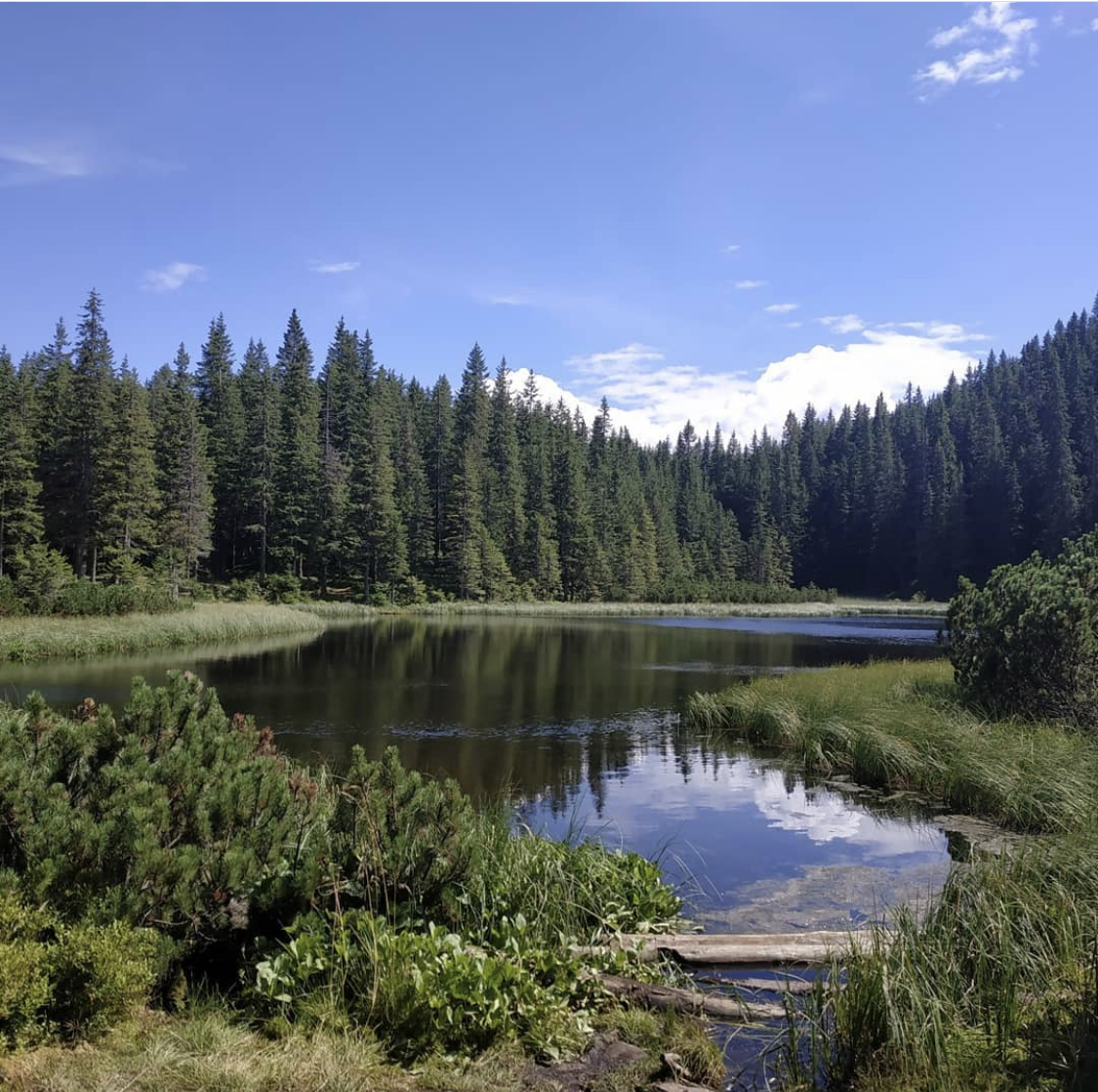 Озеро у самому серці густого смерекового лісу. Вода у ньому настільки чиста, що якщо підійти близько до берега можна побачити дно.
