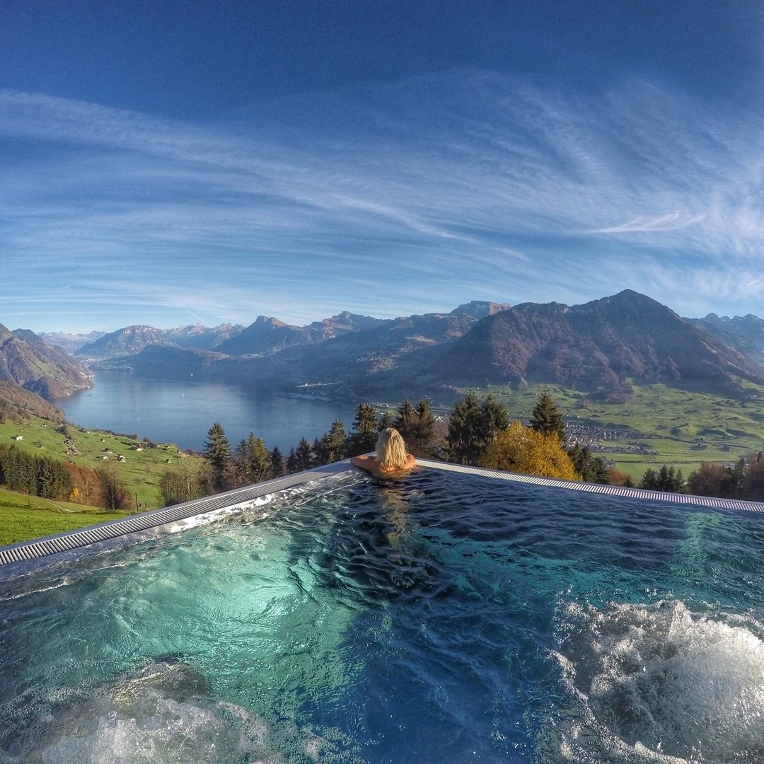 Розкішний п'ятизірковий готель знаходиться далеко у горах, подалі від міської метушні. З панорамних вікон та балконів відкривається розкішний краєвид на Люцернське озеро та гірські вершини.