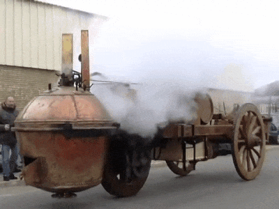 Були візки та запряжені коні. Перший паровий автомобіль з'явився у Франції 250 років тому. Так що можна сказати, що в пароплава, паровоза та автомобіля одна "бабуся". Цей чудо-автомобіль можна побачити в музеї Парижа.