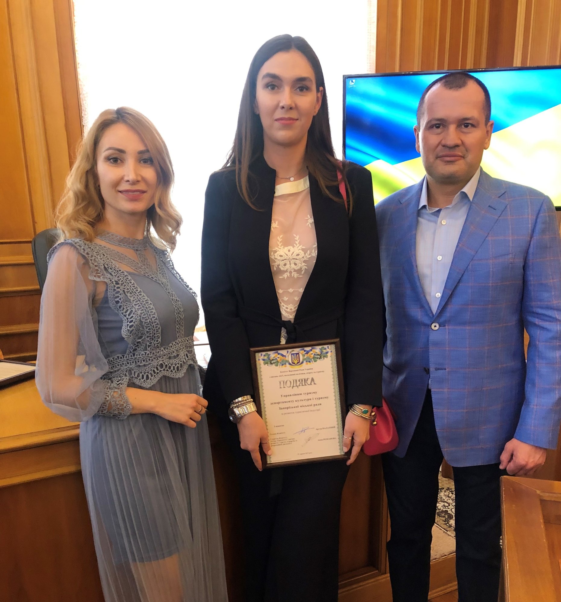 Під час урочистого нагородження у стінах Верховної Ради України Управління туризму Запорізької міської ради було відзначено подякою за розвиток туристичної індустрії від Комітету Верховної Ради України з питань сім'ї, молодіжної політики, спорту та туризму. Подяку від імені міста отримала заступник директора Департаменту культури і туризму Катерина Сімонова.